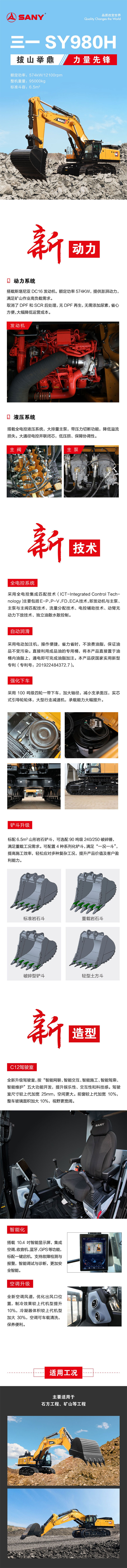 | 性能 | 行走速度:4.3/3.0km/h 爬坡能力:35° 回轉(zhuǎn)速度:7rpm 接地比壓:132kPa 鏟斗挖掘力:495kN 斗桿挖掘力:469kN  |